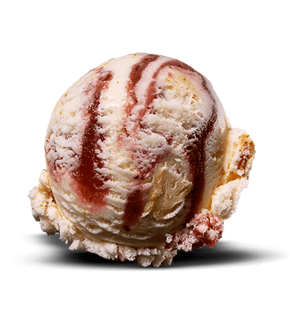 Cheesecake flavored ice cream loaded with cheesecake pieces and tied up with a ribbon of strawberry flavor.